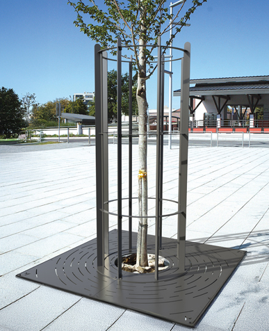 Rotskydd och markgaller används vid nyplantering i hårdgjorda ytor för att skydda rotsystemet mot packning och samtidigt möjliggöra vatten- och syretillförsel.